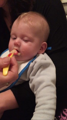 Mhhhmm lecker 😉 Oma hat dir keksbrei gekauft und du hast es dir schmecken lassen ☺ Immer stück für stück werden wir es jetz steigern und ausprobieren was dir schmeckt und was nicht😊 wir sind schon ganz gespannt 😄