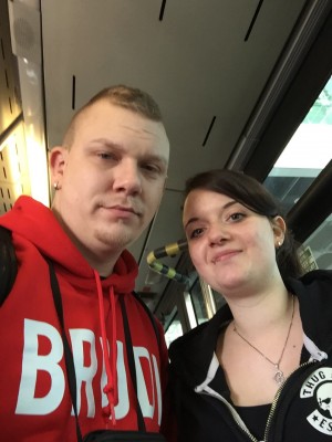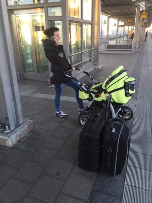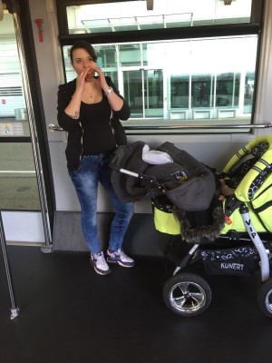 Mama hat versucht noch schnell ihre Semmel aufzuessen bevor wir mit dem Bus zum Flieger fuhren, was ihr natürlich nicht geling 😃 aber man konnte es ja mal versuchen 😆