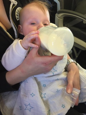 Du hast etwas getrunken als wir starteten, da du sonst zuviel Druck auf die Ohren bekommen hättest und das hätte dir wehgetan aber du warst eh so super lieb beim flug ❤ wie immer halt 😆