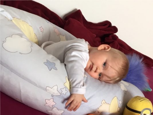 In dem Stillkissen sitzt du sicher und bist vor dem Umfallen geschützt. Dann sitzt du da eine halbe Stunde und beschäftigst dich mit deinem Spielzeug und in der Zeit kann sich Mama oder Papa um den Haushalt kümmern 😋