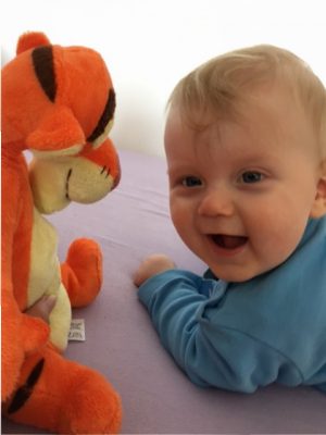 Den Tigger hast du ja zu Weihnachten von Opa und Oma Lehmann bekommen. Du liebst ihn seit der ersten Sekunde und ohne ihn geht nix mehr 😄 Wenn er anfängt zu Babbeln hast du deinen größten Spaß und lachst dich Schlapp 😃