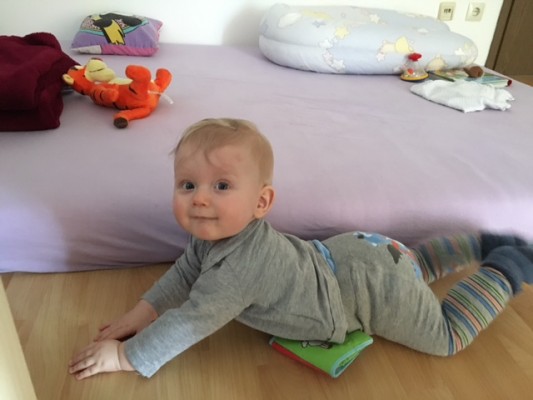 Du rollst dich rum bis du da angekommen bist wo du hin willst 😁 und plötzlich war die Matratze zu ende 😄 aber dir ist nichts passiert wie man sieht 😋 Sowas passiert wenn Papa und Mama einmal nicht hinsehen 😄