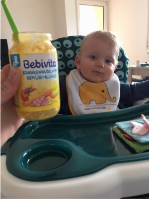 Auch wenn du noch nicht ganz 8 Monate alt bist hast du trotzdem einen riesigen Appetit und isst in kurzer Zeit ein großes Mittagsgläschen 😋 Schinkennudeln sind sowieso dein Favorit und schmecken dir mehr als nur gut 😊 Aber nach dem Gläschen bist du auch Pappsatt 😄👍🏻